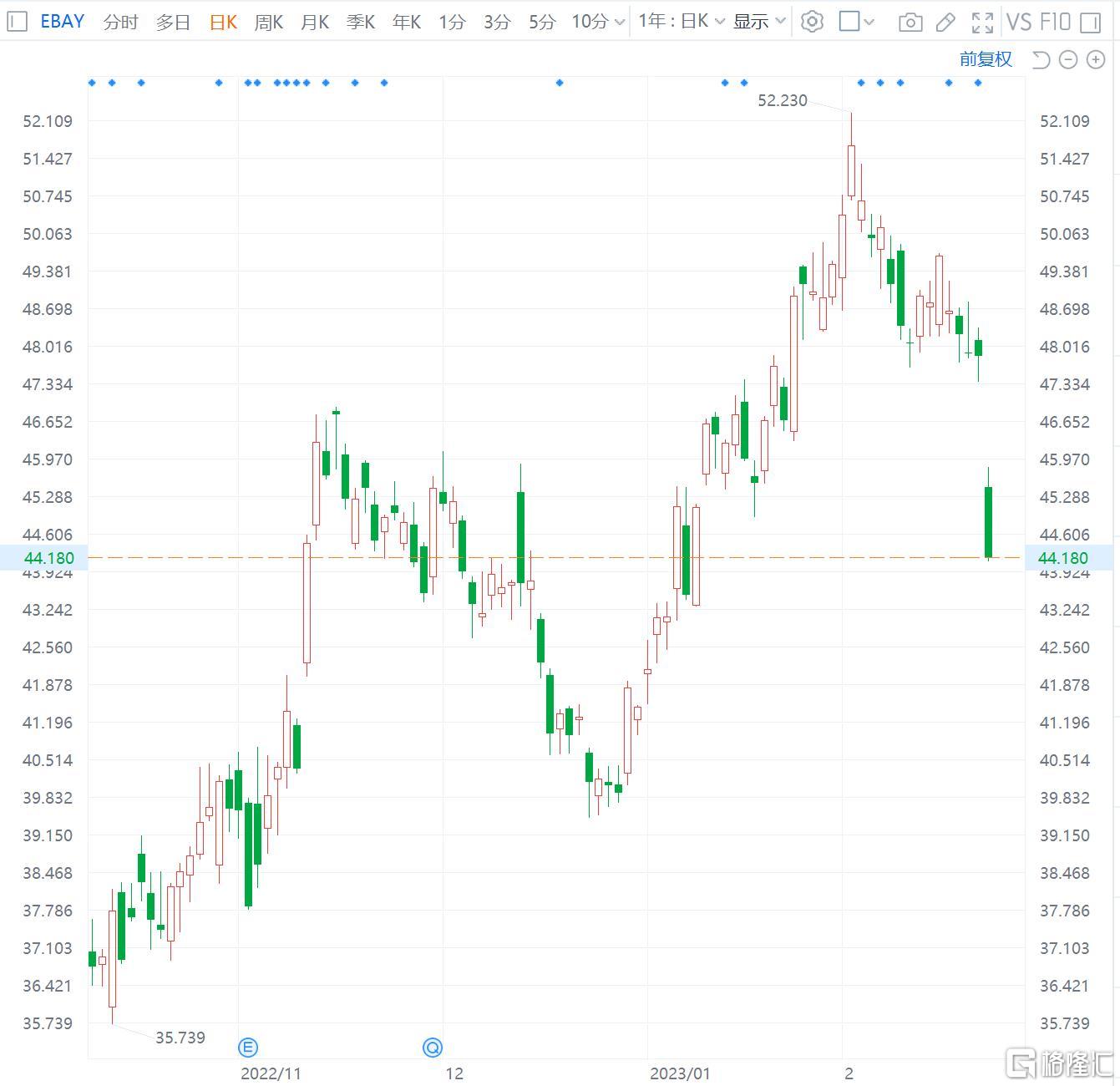 格隆汇2月24日丨eBay(EBAY.US)跌7.73%,报44.15美元,总市值240亿美元,市值创1个半月低位。eBay公布2022财年第四季度财报:营收为25.1亿美元,同比下降4%,超过分析师预期的24.7亿美元;净利润为5.8亿美元,同比下降70%,超过分析师预期的4.35亿美元;第四季度总交易额(GMV)为182亿美元,同比下降12%;四季度拥有1.34亿活跃买家,同比下降9%。